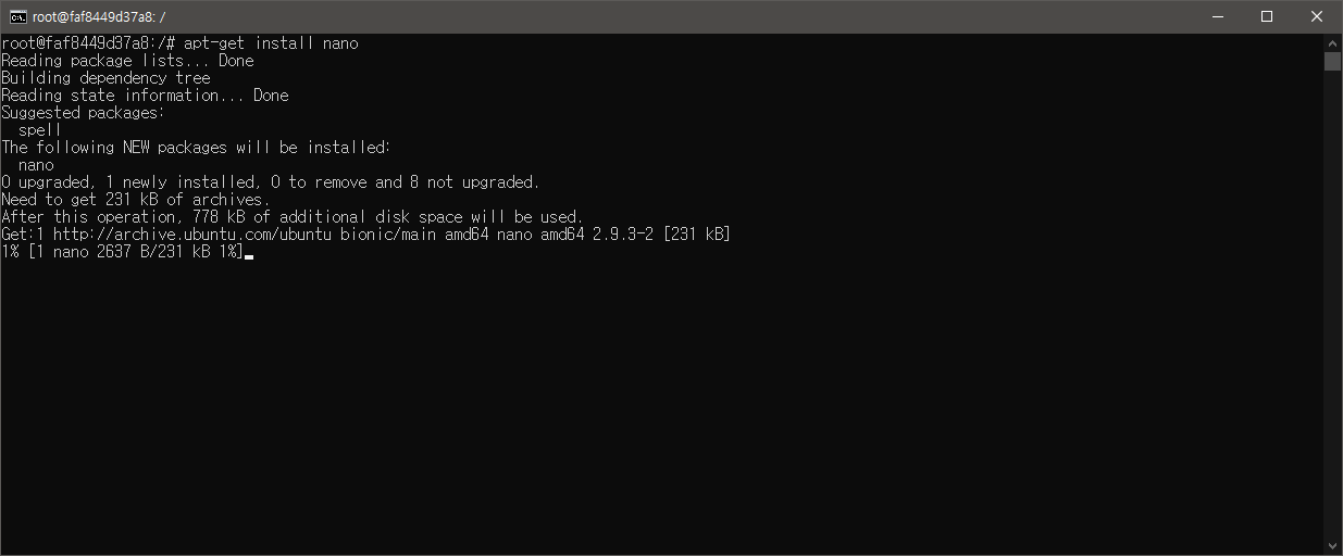 이 컨테이너는 우분투가 설치되어있다. 그래서 apt-get으로 vim을 설치한다.