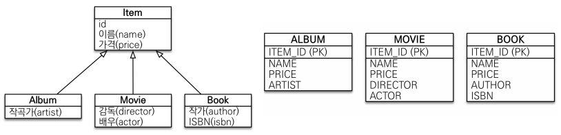 - 구현 클래스마다 테이블 전략 : 서브타입 테이블로 변환