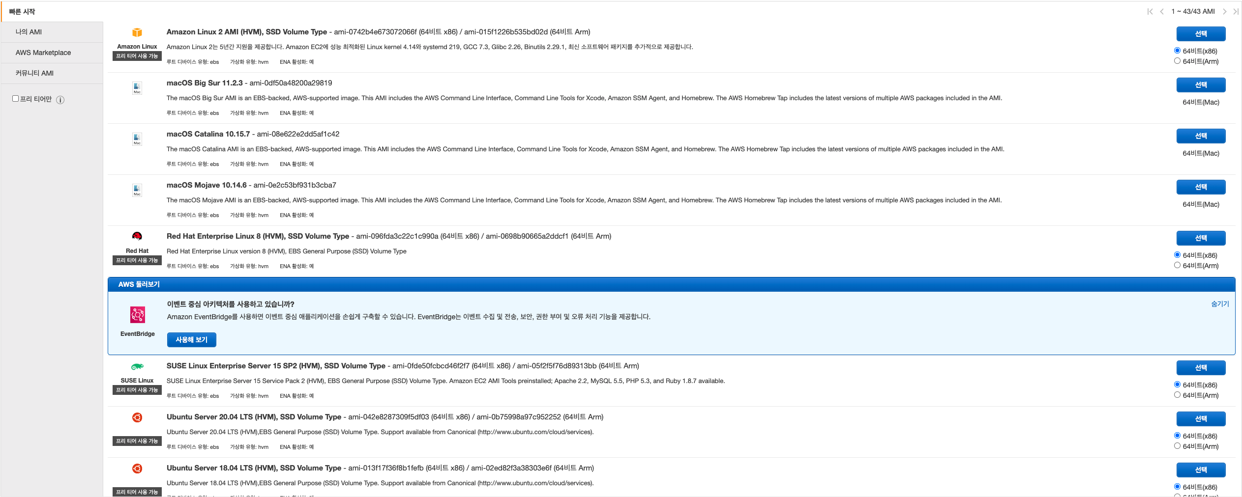 - OS 및 소프트웨어 패키지(AMI) 선택