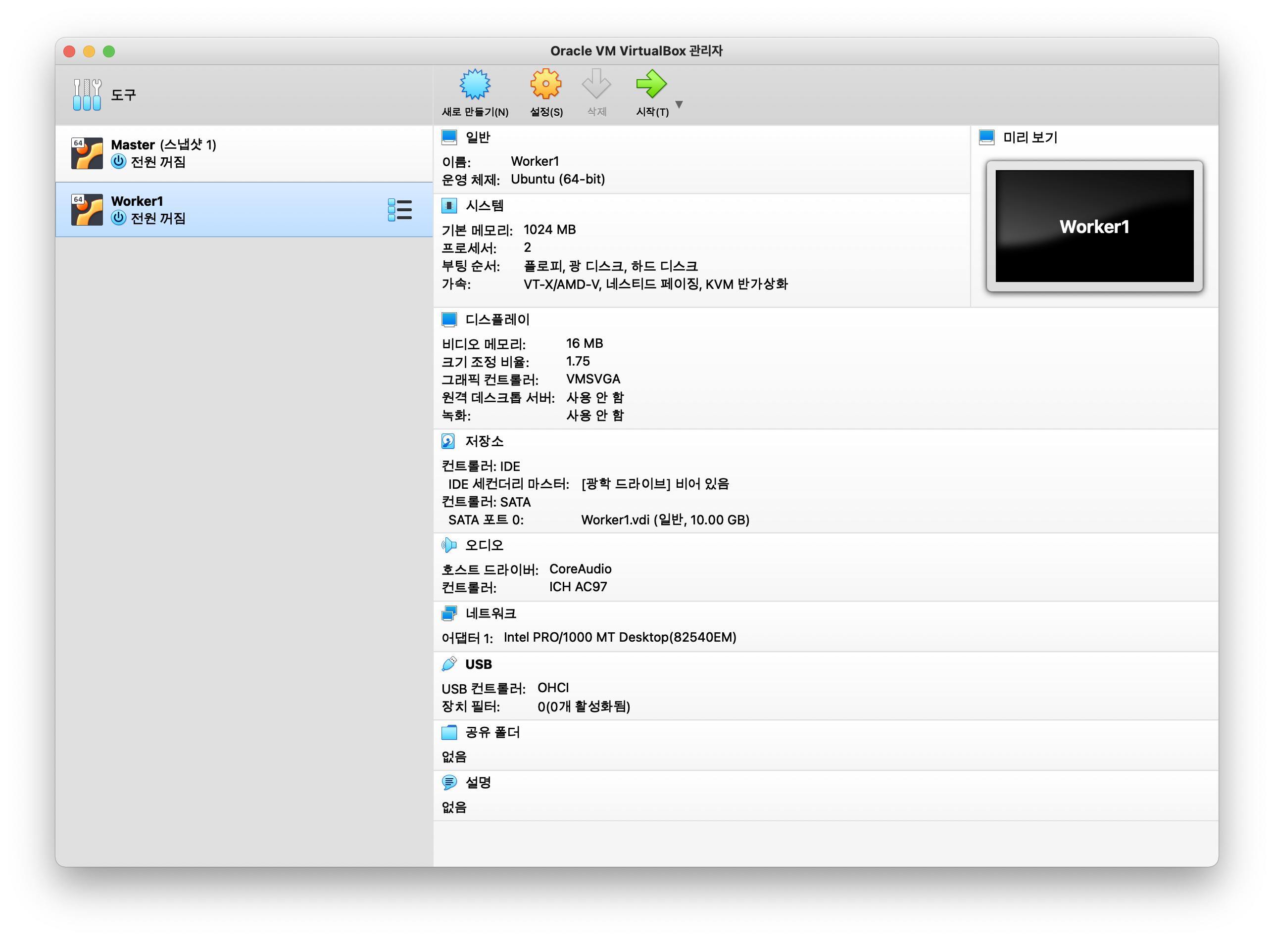 짜잔, Worker1 VM이 정상적으로 복제됬습니다. 같은 방법으로 Worker2 VM을 생성해주세요.