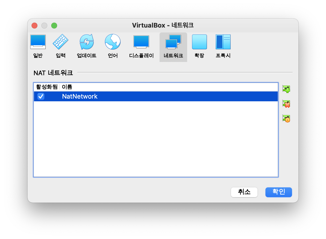 새 NAT 네트워크가 추가되면, 확인 버튼을 클릭합니다.