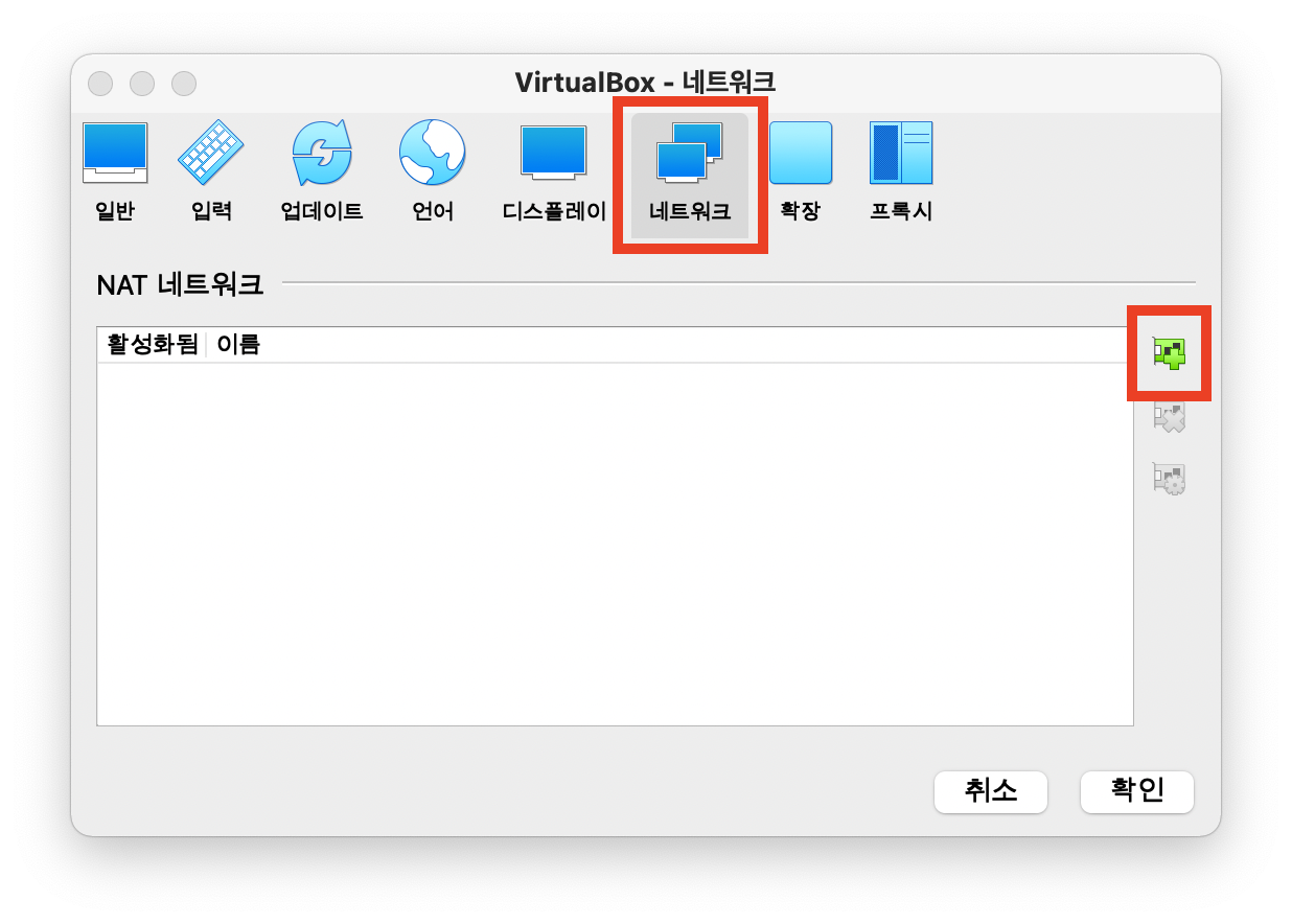 네트워크를 클릭하고 새 NAT 네트워크 추가 버튼을 클릭합니다.