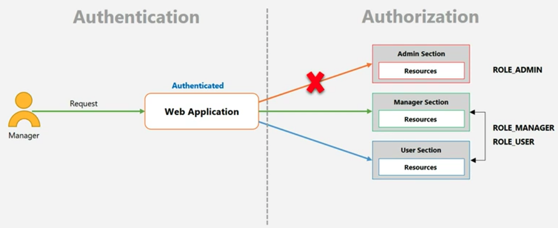 - 인증 정보, 요청 정보, 권한 정보를 이용해서 사용자의 자원 접근을 허용할 지 여부를 결정합니다.