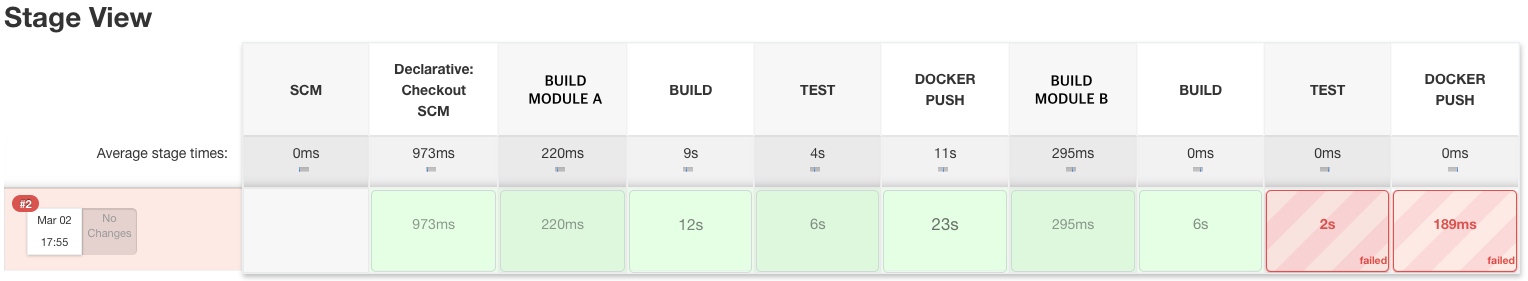 - 개발 중인 모듈에서 빌드 혹은 테스트가 실패할 경우 전체 빌드가 실패합니다.