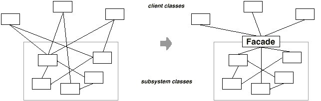 퍼사드 패턴 (Facade Pattern) Facade는 "건물의 정면"을 의미하는 단어로 어떤 소프트웨어의 다른 커다란 코드 부분에 대하여 간략화된 인터페이스를 제공해주는 디자인 패턴을 의미합니다. 퍼사드
