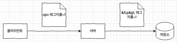 다시 한 번 설명드리자면, XSS 공격을 방지하기 위해 백엔드에서는 요청 본문을 escape합니다.