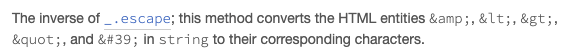 Javascript 최고 인기 라이브러리 중 하나인 lodash에서도 unescape 기능을 제공해주고 있었습니다.