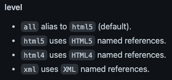 다행히도 이 라이브러리는 HTML5의 모든 entities를 치환해준다고 하네요. 사용 방법도 어렵지 않습니다.